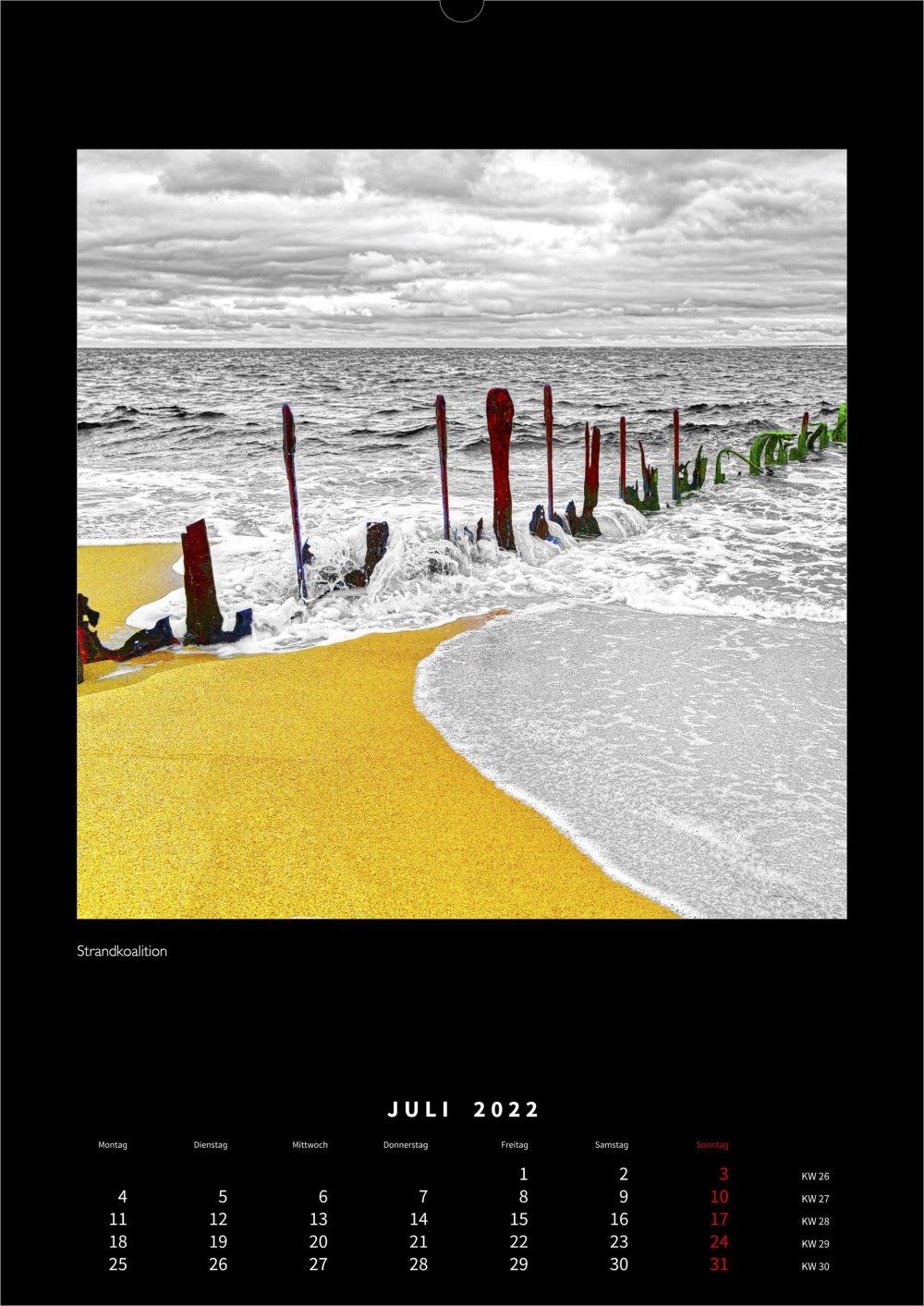 Mein Kunstkalender hat das volle A2-Format von 45 cm x 60 cm (A2 hoch). Sämtliche Kalenderblätter sind auf hochwertiges Premiumpapier 250g/m2 gedruckt. Das Kalendarium für 2022 ist in schlichtem Design angelegt.